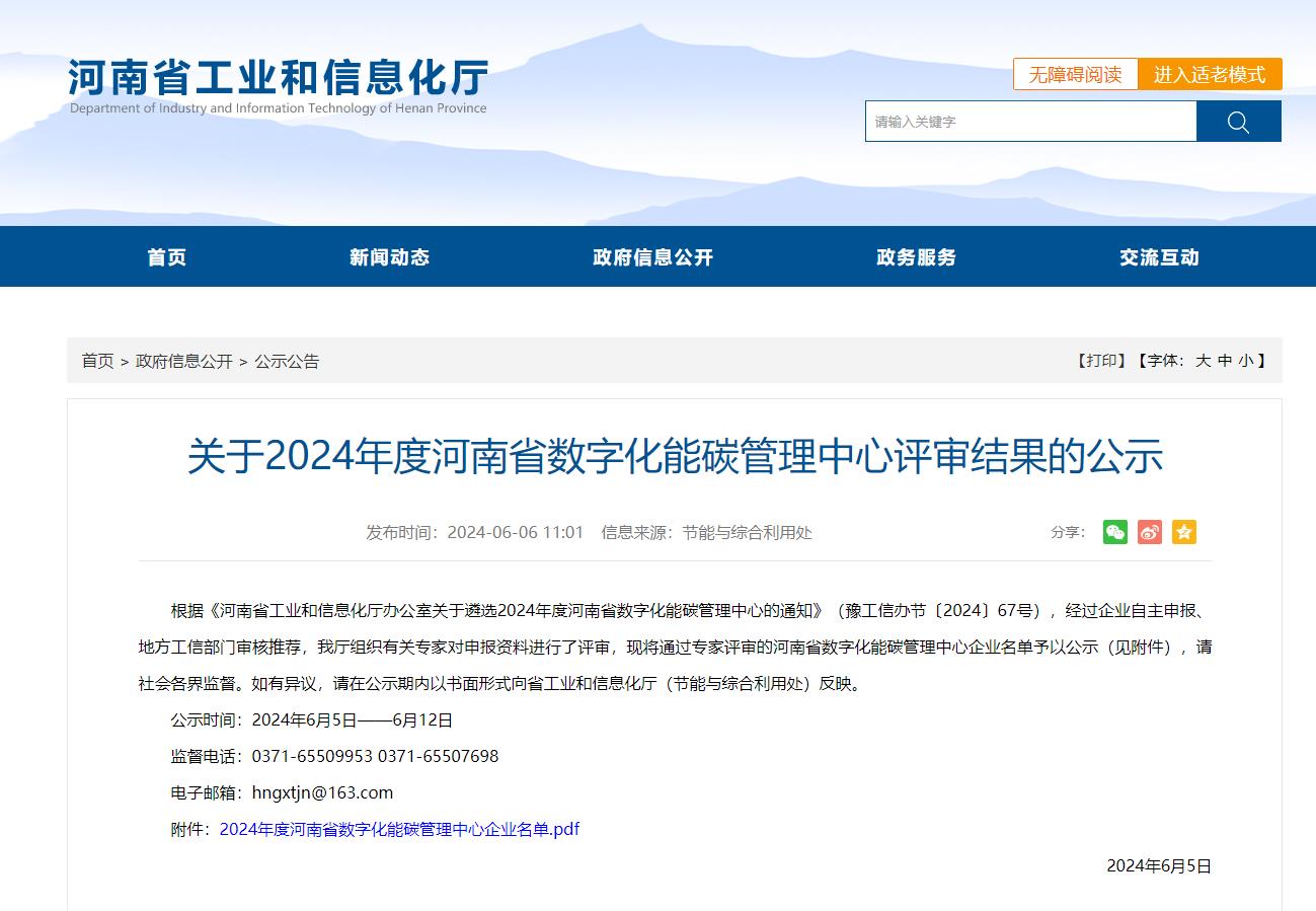 喜訊!銀金達新材料入選河南省數字化能碳管理中心
